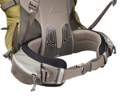 Centered between the load transfer panels and your back are Gregory’s signature lumbar pads. The lumbar pads are designed to assist load transfer and, when your torso is measured correctly, fit perfectly into the small of your back. We use multiple densities of foam sandwiched together, resulting in progressive cushioning that protects your back while providing the firmness required for efficient load transfer.