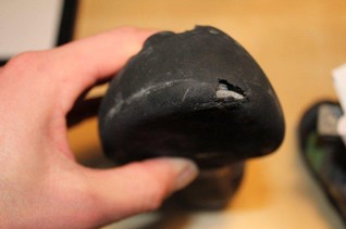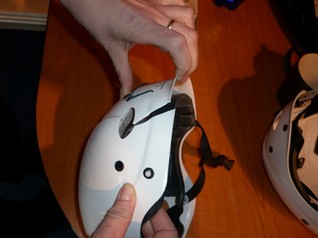 Dieser Helm wurde durch einen Steinschlag beschätigt (Reklamation "Nein")